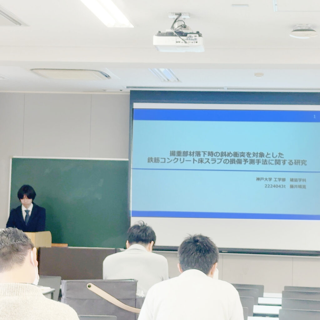 2026年2月18日、神戸大学工学部建築学科において、構造系卒業論文発表会が開催されました。本年度は水島研究室から4名の学部生が研究成果を発表しました。